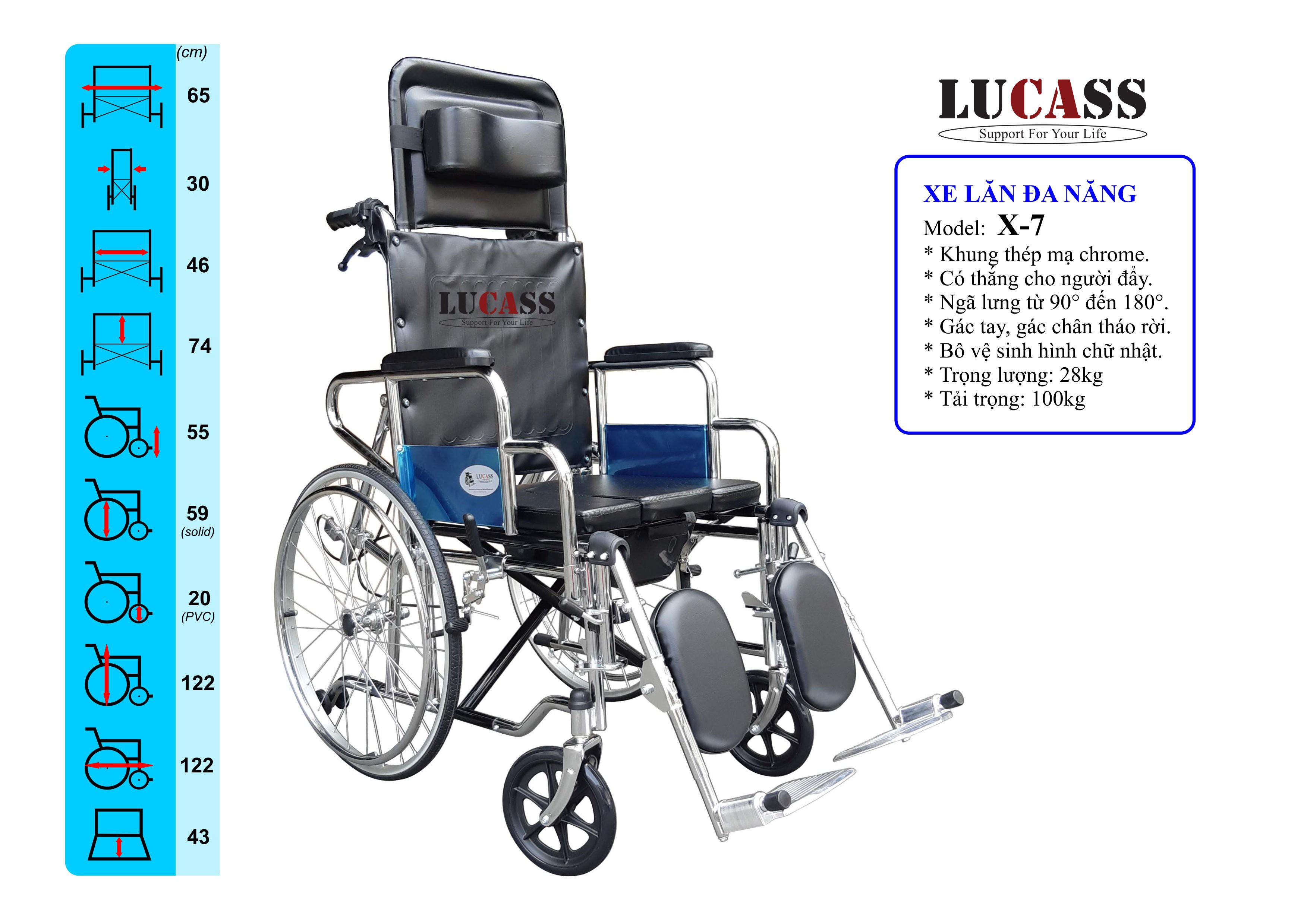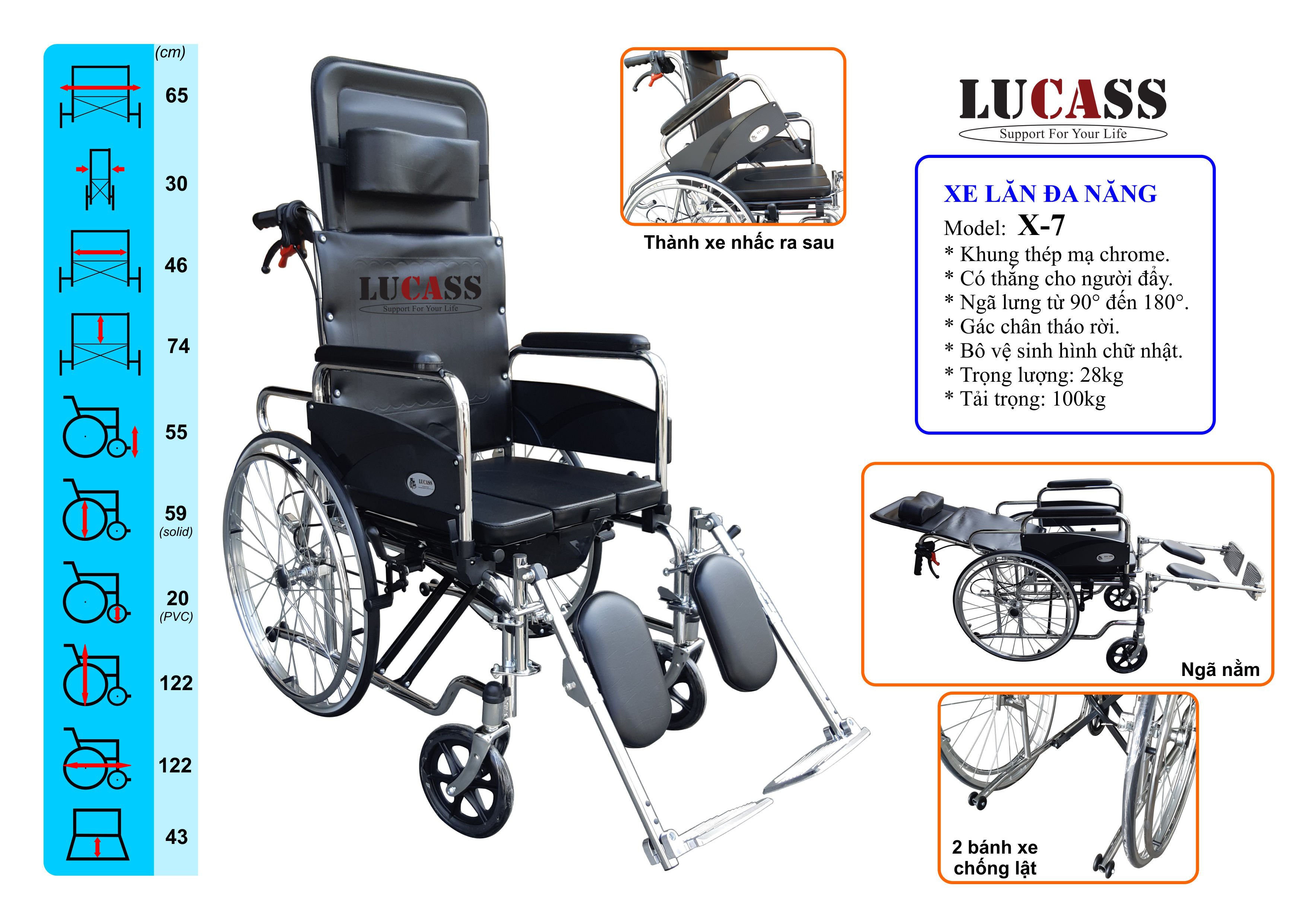 Xe lăn đa năng bánh căm Lucass X7 (có thắng tay, 2 chống lật)